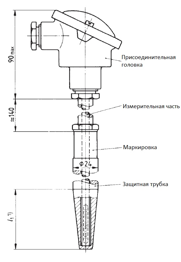 Ниже представлен рисунок термопары по данному стандарту.