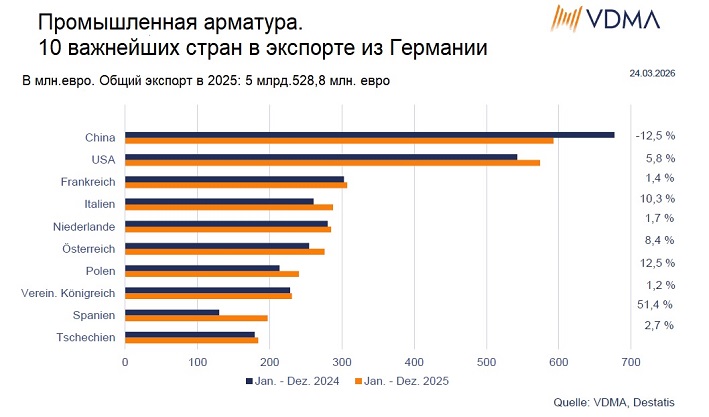 «Торговые споры с США в прошлом году не замедлили развитие отрасли. Однако на фоне конфликтов на Ближнем Востоке настроение заметно ухудшается. Помимо ограниченной доступности промежуточных продуктов и высоких цен на энергоносители и сырье, ослабление рынков сбыта также создает нагрузку на компании. Наблюдается глобальное нежелание инвестировать, и, наконец, что не менее важно, факторы географического положения в Германии и Европе все еще нуждаются в улучшении» — говорит Аксель Вайднер, председатель Немецкой ассоциации производителей арматуры и акционер Mankenberg GmbH